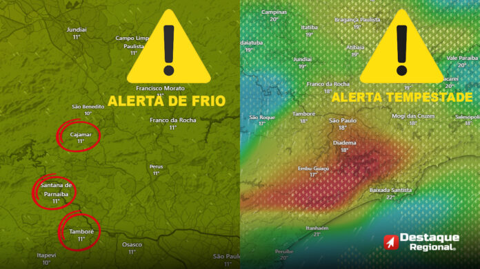 No mesmo dia, antecedendo a massa de ar polar, o choque entre o calor e o frio, vão provocar muita chuva em forma de tempestade, com fortes rajadas de vento, no Estado de São Paulo, Sul de Minas e Rio de Janeiro.